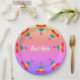 Colourful party paper plates with yoga figures and pink gradient background. Easy to add your custom text.