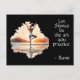"Let Silence be the art you practice." - Inspirational Rumi quote on black background with watercolor digital illustration of a woman doing a yoga pose on a beach