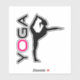 A vinyl decal with a simple design of a black silhouette of a woman performing a yoga pose.