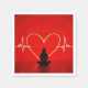 A silhouette of a woman sits cross-legged in front of a bright red background with a glowing heart shape and electrocardiogram lines