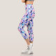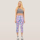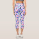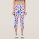 A Colourful Capri Pant Legging For Yoga Fitness Workouts Designed In Different Yoga Poses In Pinks and Blues