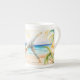 A serene watercolor design featuring a woman in a yoga Namaste pose by the ocean at sunrise, printed on a fine Bone China mug. The calm beach view, soft pastel tones, and graceful silhouette create a peaceful start to any morning. Perfect for those who love yoga, mindfulness, or a touch of coastal calm in their daily routine.