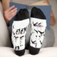 My partner loved it! It fits well and doesn’t come off after washing it. We love it! It’s great. When he wears it stretches a bit but you can still see the pics! It’s thin so don’t expect thick socks. Great though!