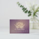 Yoga Studio Meditation Instructor / Life Coach / Healer / Reiki Master / Massage Therapy 10 Class Pass Loyalty Appointment Business Card Template - Modern Elegant Faux Gold Lotus on Purple Grunge Background.