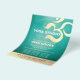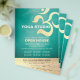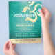 Yoga Studio Meditation Instructor / Life Coach / Healer / Reiki Master Open House Flyer Template - Modern Faux Gold Foil Om Symbol on Blue Green Teal Turquoise Aqua Colour Background.