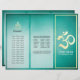 Yoga Studio Meditation Instructor / Life Coach / Healer / Reiki Master / Massage Therapy Tri-Fold Brochures Template - Modern Faux Gold Foil Om Symbol on Blue Green Teal Turquoise Aqua Colour Background.