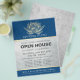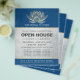 Yoga Studio Meditation Instructor / Life Coach / Healer / Reiki Master / Massage Therapy Open House Flyer Template - Modern Elegant Faux Gold Lotus on PANTONE 19-4052 TCX Classic Blue Color Grunge Background.