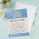 Yoga Studio Meditation Instructor / Life Coach / Healer / Reiki Master / Massage Therapy Open House Flyer Template - Modern Elegant Faux Gold Foil Lotus on Blue Gold Texture Background.