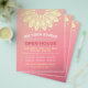 YOGA Studio Meditation Instructor Studio Open House Flyer Template - Elegant Faux Gold Foil Floral Mandala Symbols on Pink Background.