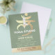 YOGA Meditation Instructor Studio Open House Flyer Template - Elegant Faux Gold Foil Yoga Meditation Magical Root Chakra Symbol / Muladhara Chakra Symbol / Seed Mantra LAM Sanskrit Letter with Meditation Pose / Tree Pose on Green Colour Background.