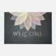 YOGA Studio Meditation Instructor Welcome Doormat Templates - Elegant Colourful Lotus Floral Mandala Symbol on Grunge Dark Background.