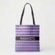 Yoga stylish white striped pattern on violet Tote Bag. Ideal for yoga lovers. Namaste is the yoga greeting that means "My soul greets your soul" or "The divine in me bows to the divine in you".