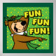 Bring the fun with this lively Yogi Bear design! Featuring the ever-cheerful Yogi in a playful pose alongside bold, dynamic text reading "FUN FUN FUN!" this vibrant artwork bursts with energy. The bright green and yellow polka dot background adds a retro animation feel, making it perfect for fans of classic cartoons and joyful characters. Whether you're a longtime Yogi Bear fan or just love exciting, nostalgic designs, this artwork is sure to spread smiles and positivity!