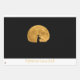 Portraiture depicting silhouette of Japanese Samurai with Ensui Jingasa, drawn sword, and bandanna blowing in the wind against the backdrop of a full moon, contains the colours black, goldenrod, navajo white.