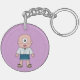 The hitotsume-kozou (一つ目小僧), whose name literally means "one-eyed kid," is a mischief-maker with one eye and a long tongue. They appear as young boys dressed as monks, and their main goal is simply to use their bizarre features to scare people. This keychain features a cute, cartoon drawing of a hitotsume-kozou in the attire of a young Buddhist monk.