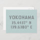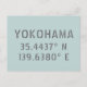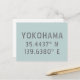 Modern, urban graphic features latitude and longitude coordinates of Yokohama, Japan. Great gift idea for those who love to travel or as a hometown memento.