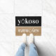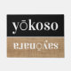 Simple text design in Japanese with a burlap look, a solid black background, and white fonts. yōkoso is the famous Japanese way to say hello, and sayōnara is a way to say good-bye. Modern design by Lumirala.