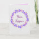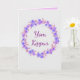 May you have an easy fast this Yom Kippur. This card features a silver front with a purple floral wreath with Yom Kippur in the middle. The inside of the card is purple and have a message written in white. Purchase your card today!