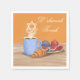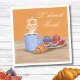 This napkin features a digital hand illustration by Daphsam, with a steaming cup of coffee forming a Star of David, surrounded by pomegranates, figs, and a sweet rugelach and the phrase, "L’shanah Tovah". A perfect touch of tradition and warmth for your Yom Kippur Break-the-Fast, celebrating reflection, renewal, and togetherness.