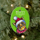 Yorkie Cute Dog Christmas Mod Stripe Custom Ceramic Ornament