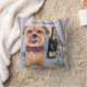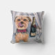 Pillow with adorable Yorkie Terrier waiting to help you celebrate anything as he brought the Champagne.
