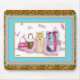 Fun and unique art print with yorkie and hatboxes with leopard print frame. Unique and feminine for gifts for girls and women. If you need help with personalising contact Greer at greerdesign@aol.com