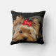 Yorkie with red bow pillow