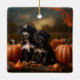 Yorkipoo Puppy Autumn Delight Pumpkin Ceramic Ornament