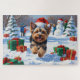 Yorkipoo Running in Snow with Christmas Hat Jigsaw Puzzle