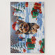 A playful Yorkipoo runs joyfully through the snowy winter scene, wearing a festive red Christmas hat. This adorable design highlights the breed’s fluffy coat, bright expression, and affectionate personality while capturing the warmth and joy of the holiday season. A delightful winter moment full of festive cheer.