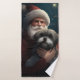 Yorkipoo With Santa Claus Festive Christmas Bath Towel Set