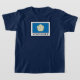 100% cotton so perfect for summer, It is a nicely designed t-shirt, the fabric is soft and the seams finished well, the body of the t shirt has no side seams. I bought a medium size for my two grandsons, aged 9 and 8 it will be slightly big on them but I would rather that than too small