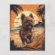 Colourful graphic art design of a yorkshire-terrier at a tropical beach with palms. Awesome gift for Yorkshire-terrier owner and Yorkshire-terrier lover.