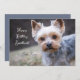 Yorkshire terrier birthday card greeting. Simple “Happy Birthday” text with name or “sweetheart”, and a place for a signature. A little Yorkie’s face is the adorable image. Perfect for giving to a man or woman. The dog photo can be replaced with one of your own. If needed, the text colour can be changed in the customise area.