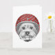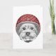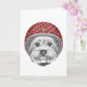 This design features a portrait of a Yorkshire Terrier wearing a teal and red polka dotted helmet.