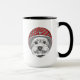 This design features a portrait of a Yorkshire Terrier wearing a teal and red polka dotted helmet.