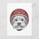 This design features a portrait of a Yorkshire Terrier wearing a teal and red polka dotted helmet.