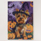 Yorkshire Terrier Dog Halloween Witch And Pumpkin Jigsaw Puzzle