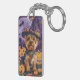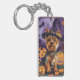 Yorkshire Terrier Dog Halloween Witch And Pumpkin Key Ring