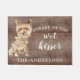 Funny beware of the wet kisser" Yorkshire Terrier Dog door mat set on a rustic faux background. Visit our shop to view a large assortment of dog breads