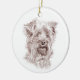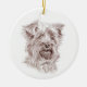 Yorkshire Terrier Drawing ornament. A fine art drawing of the adorable face of a Yorkshire Terrier on a white background done in oil pastel on paper. A perfect gift for any owner of this adorable breed.