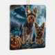 Unleash the spooky spirit with this eerie Halloween design featuring a pack of dogs under a dark, moonlit sky, surrounded by flying bats and glowing pumpkins. Perfect for those who love a touch of frightful fun with their furry friends!