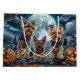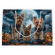 Unleash the spooky spirit with this eerie Halloween design featuring a pack of dogs under a dark, moonlit sky, surrounded by flying bats and glowing pumpkins. Perfect for those who love a touch of frightful fun with their furry friends!