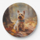 Yorkshire Terrier in Autumn Leaves Fall Inspire Paper Plate