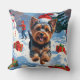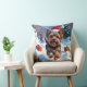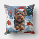 Yorkshire Terrier in Snow with Christmas Hat Cushion