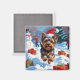 Yorkshire Terrier in Snow with Christmas Hat Magnet