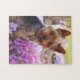 Yorkshire Terriers are very special little dogs with a big personality and this cute Yorkie jigsaw puzzle is simply special. This photograph is of a very cheeky little girl sitting in a bed of purple flowers.