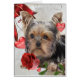 Yorkshire Terrier poses with hearts and roses for mum in this one of a kind Christmas Card perfect for Mother's Day or Valentines Day.