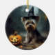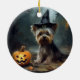 Yorkshire Terrier Pumpkins Halloween Scary Ceramic Ornament