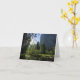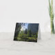 This blank note card shows a spectacular photograph of Yosemite National Park in California. Taken by my daughter-in-law, Brittany Mann, this photograph shows the setting sun peeking through trees and reflecting in water, a lush green valley floor, and a view of a majestic mountain in the Yosemite valley. This beautiful all-occasion note card is just waiting for your personal words.
